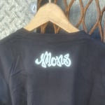 Men's black tee with white artwork on front and Mons tag on tha back.
